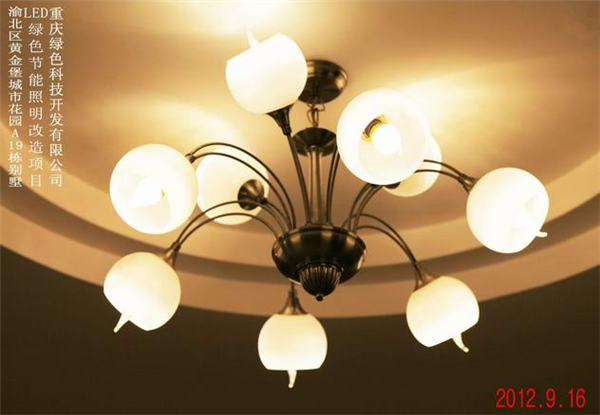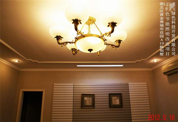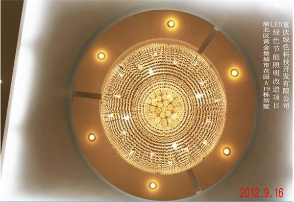 我司在渝北區(qū)黃金堡城市花園A19棟別墅實(shí)施的LED綠色節(jié)能照明改造案例實(shí)景圖