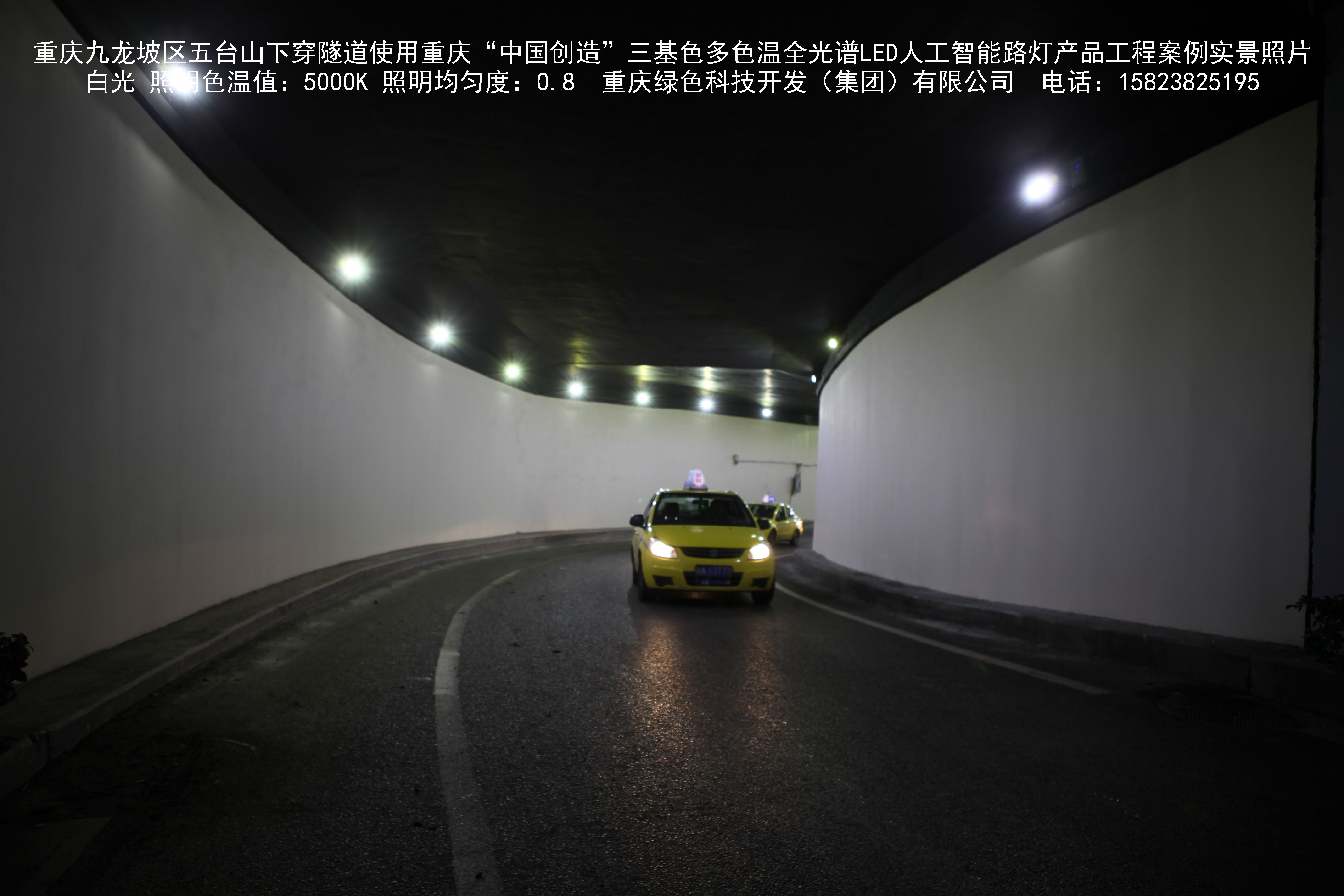 重慶市九龍坡區(qū)五臺山下穿隧道使用我司研造的重慶“中國創(chuàng)造” 三基色多色溫全光譜LED人工智能路燈產品工程案例